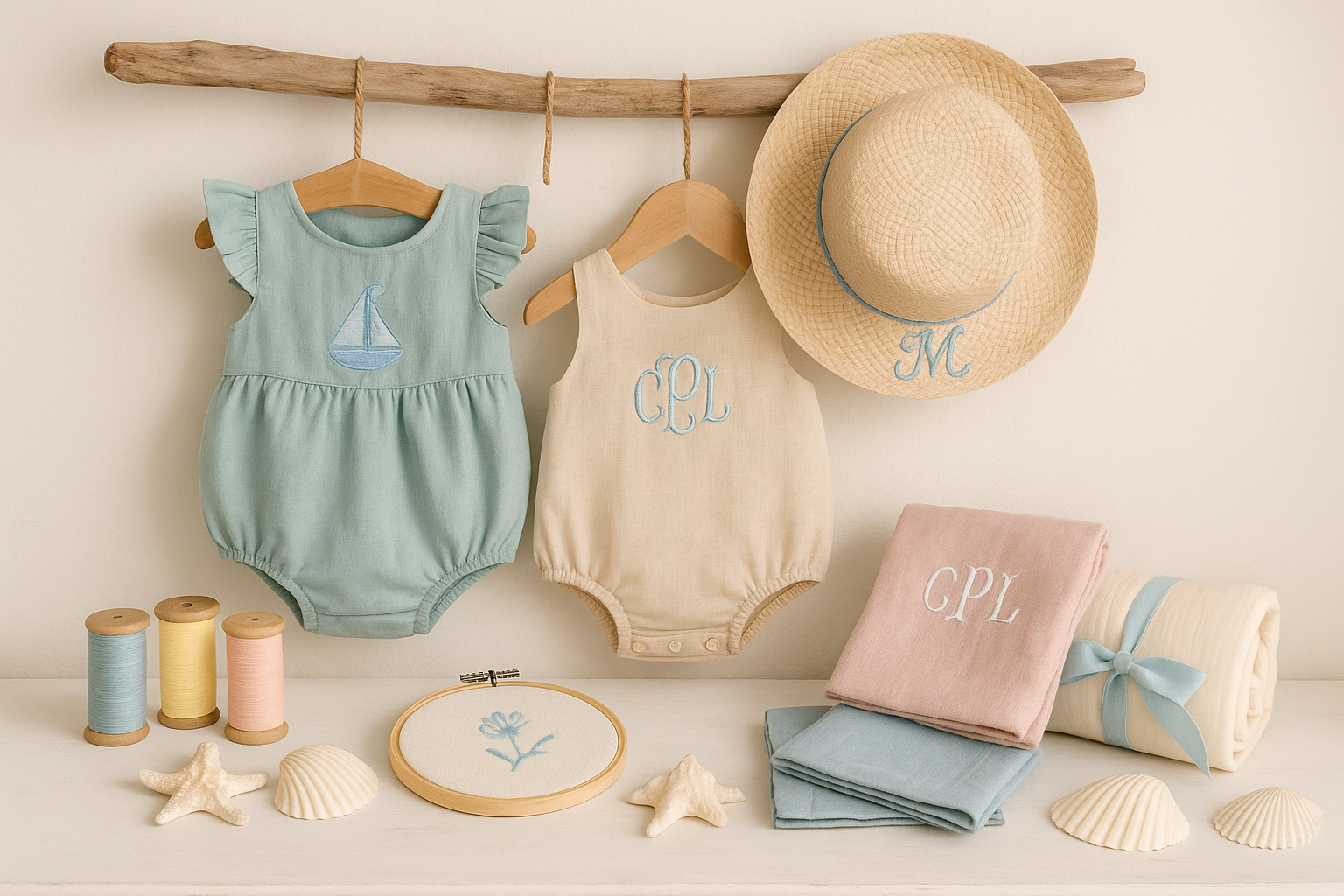 Palm & Pine Embroidery brings your ideas to life on baby clothes, keepsakes, and personalized gifts — all stitched from our home studio.